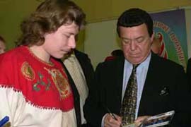 Высокие гости, посетившие выставку, высоко оценили творчество иван-чаевцев. Юрий Лужков, Евгений Примаков, Иосиф Кобзон, Юдашкин, - вот только некоторые лица, с кем пообщался "Иван-Чай". "Ах какой у Вас руководитель - гусляр", - восхищались экспонеты! "Какой у Вас талантливый баянист и балалаечница", - льстили Ивану посетители! "А какие у Вас девушки-танцовщицы", - говорили глаза мужчин!!! Все это и Вы можете увидеть на Вашей выставке. Наш русский народный ансамбль легко и просто пригласить на выставку достаточно позвонить и оформить заказ на выступление. Ждем Ваших звонков.