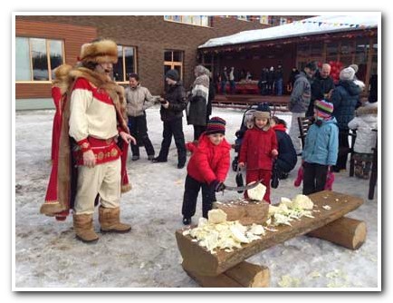 Программа масленицы была очень насыщена. Вы уже поняли, что она представляла из себя комбинацию из песенных и игровых блоков. В роли ведущего выступил Иван Самоваров. Он удачно чередовал песни с играми, четко выдерживая драматургию праздника. С гуслями Иван не расставался. Ядро песенно-танцевальной программы составили песни "золотого репертуара" Иван-Чая, усиленные масленичной и блинной темами. Скажем по-секрету, что наш коллектив обладает полным масленичным реквизитом, который мы привезли с собой, так же сделали маленькие масленницы для подарков активным участникам. Все звуковое сопровождение происходило на нашем звуковом оборудовании. В целом культурно-массовая программа МАСЛЕНИЦЫ под ключ. Питание на празднике и украшение сцены руководство поселка взяло на себя. Масленица там проводится ежегодно и народ обзавелся своими самоварами и другой посудой. Блины испекли очень вкусные. Участники праздника согревались ароматным чаем и глинтвейном Но нам нужно было ехать на следующую масленицу, и нам благодарные жители собрали с собой внушительный пакет с масленичными лакомствами.