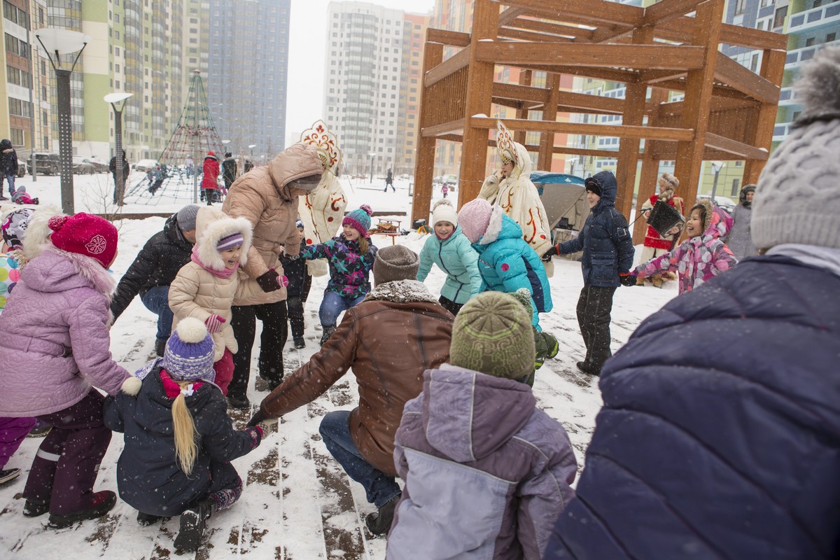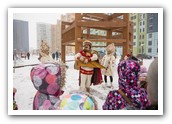В программе масленицы артисты раздают русские народные шумовые инструменты и играют вместе со всеми