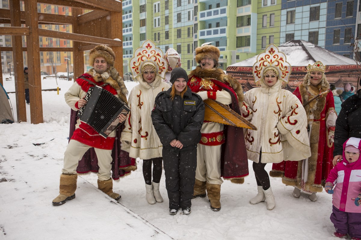 Иван-Чай и девушка охранница на масленичных гуляниях.